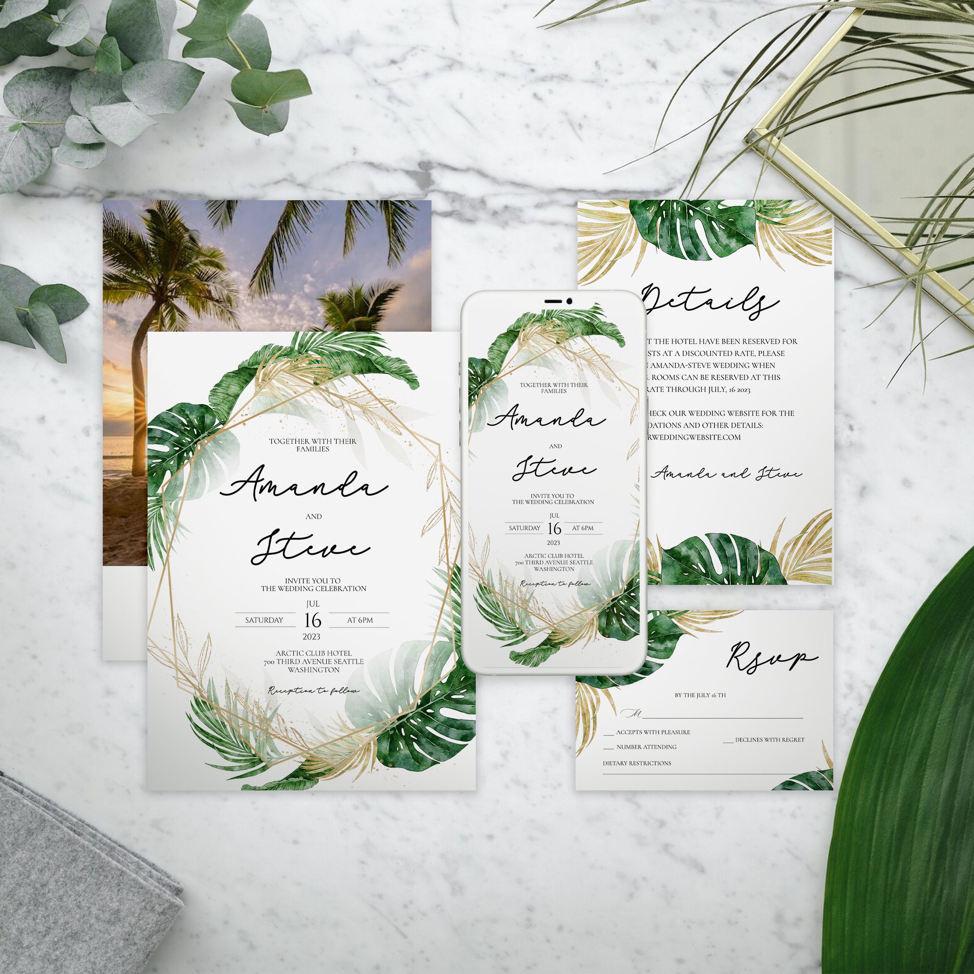 Tropic Wedding Seating Card Template and Place Card Template Place