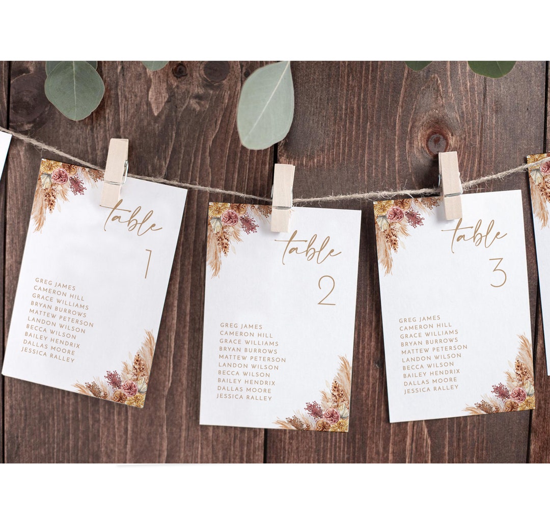 Seating Chart Cards Table Seating Template Boho Floral Etsy