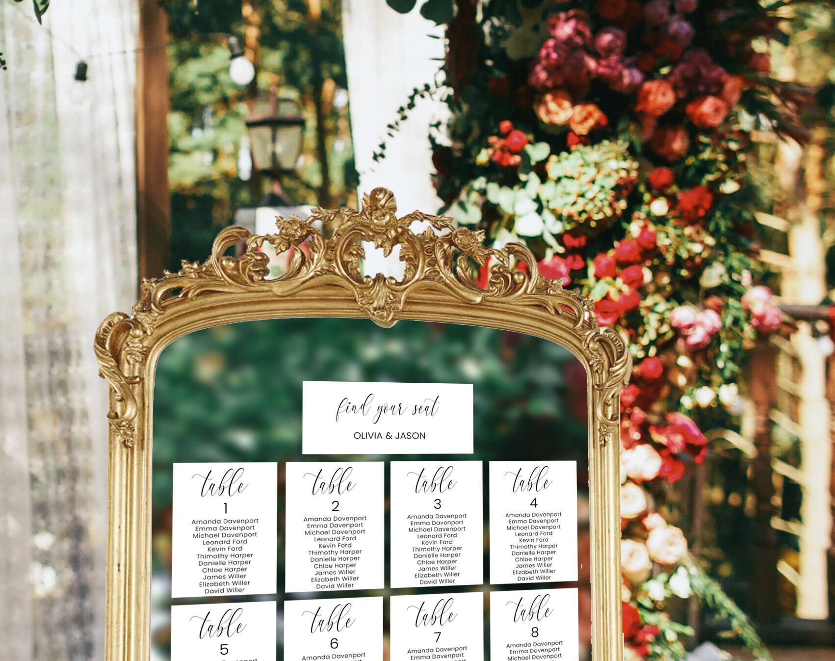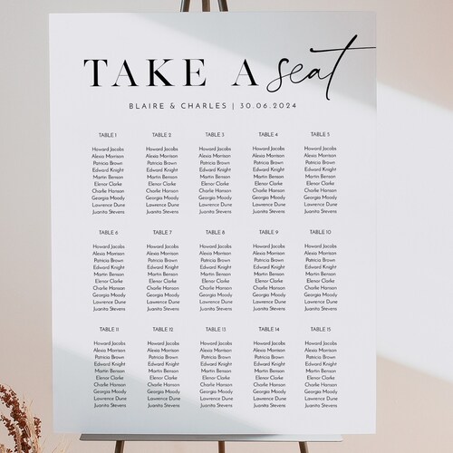 Minimalist Wedding Seating Chart Card Template Modern Wedding Seating