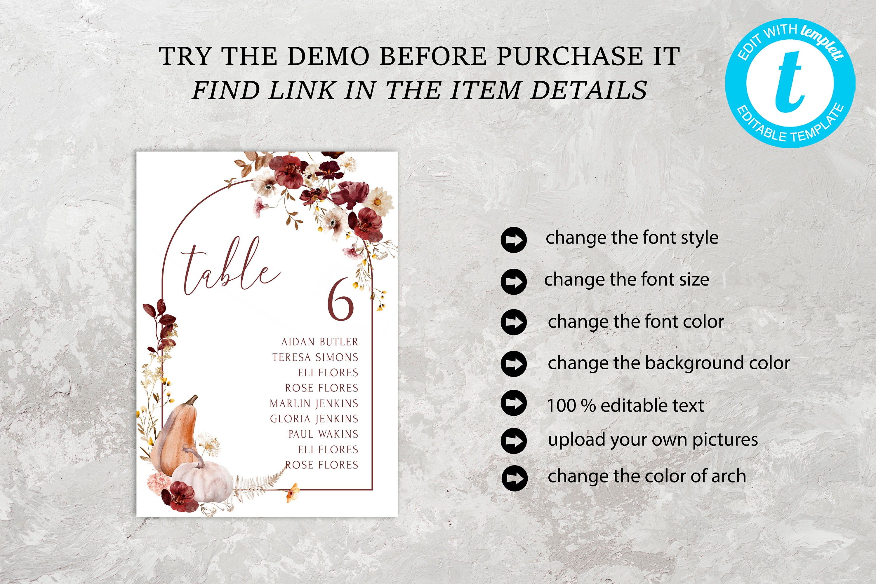 Wedding Seating Chart Card Template Table Number Digital Etsy