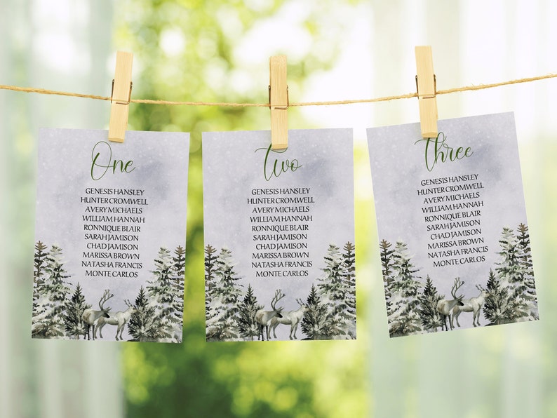 Winter Wedding Seating Chart Card Template Pine Forest Etsy