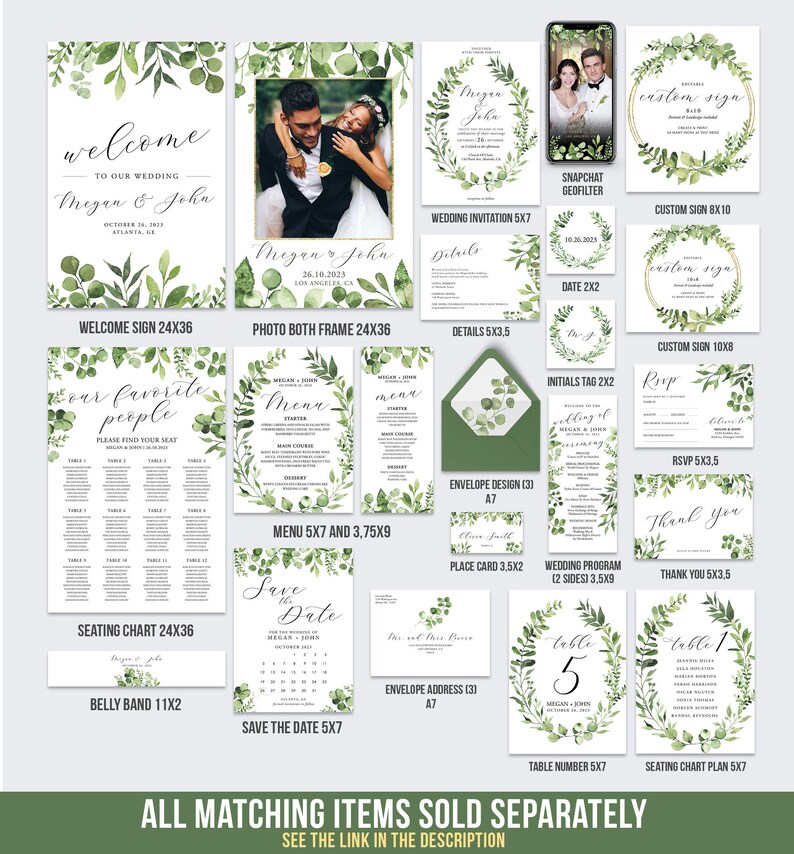 KELSEY Greenery Wedding Seating Chart Card Template Editable Wedding