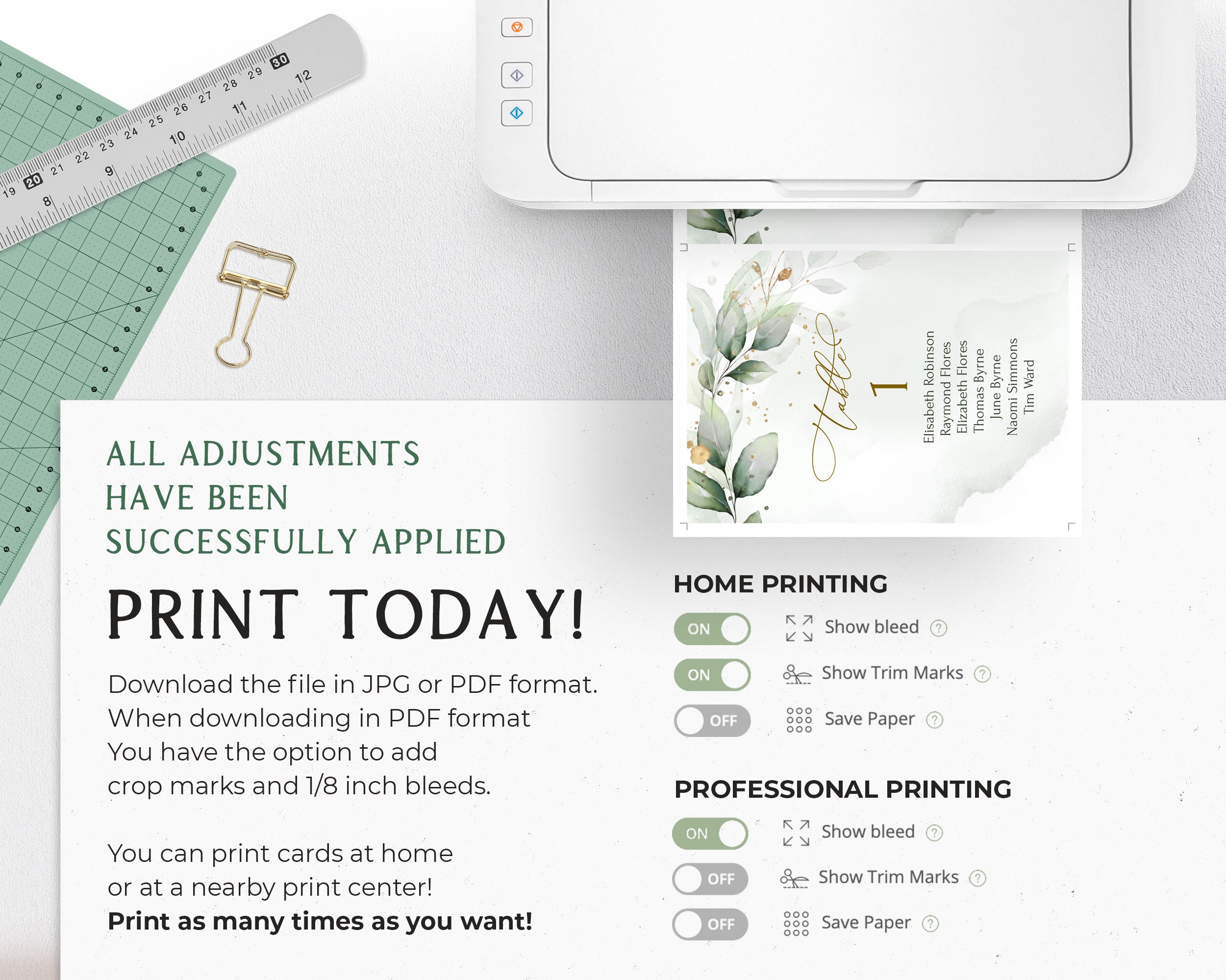 Garden Design Wedding Seating Chart Card Template 5x7 Fully Editable