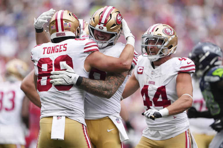 Third stringer Jake Tonges #39 late TD catch gives the 49ers a 17 13 win