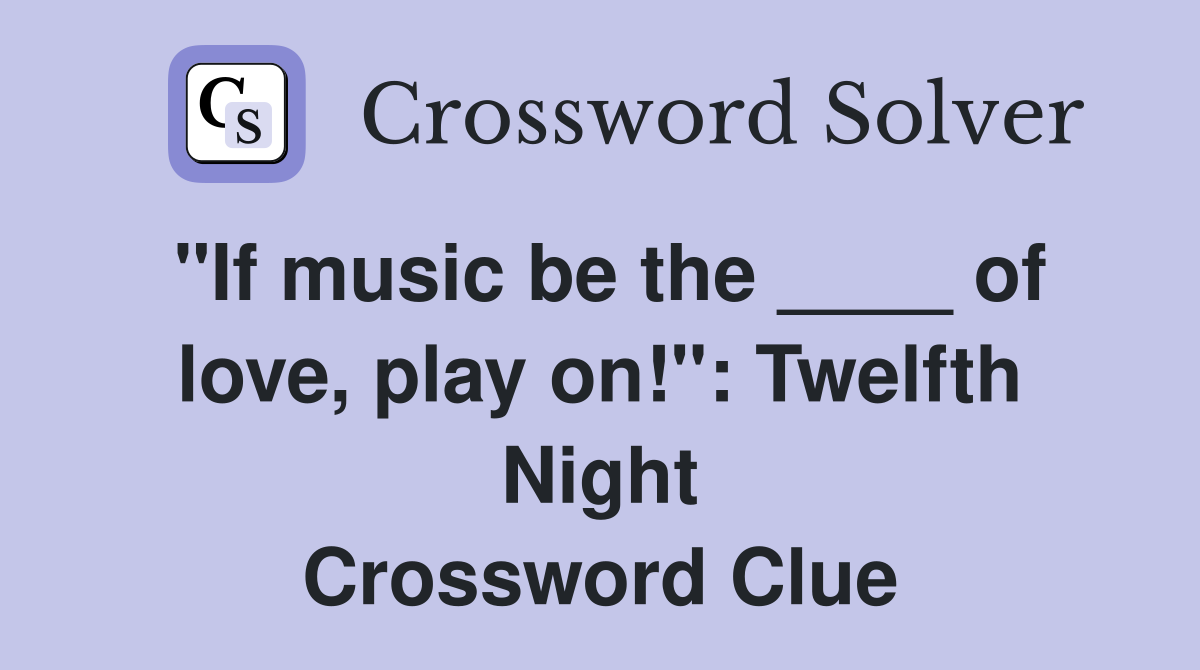 quot If music be the of love play on quot : Twelfth Night Crossword
