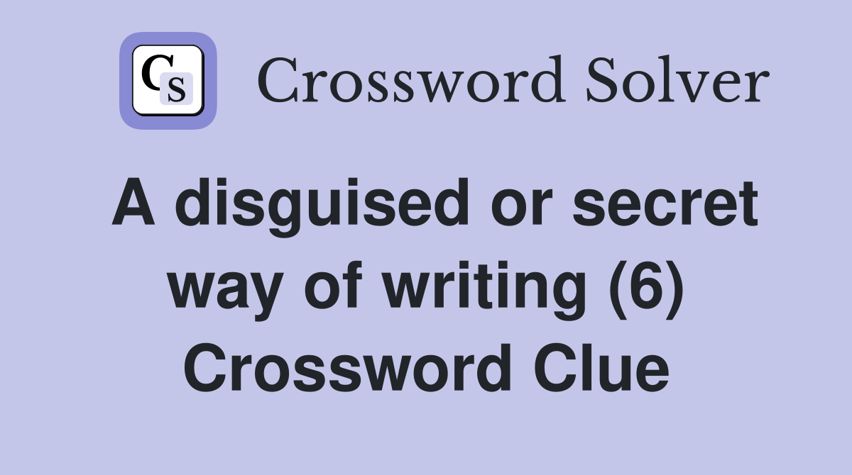 A disguised or secret way of writing (6) Crossword Clue Answers