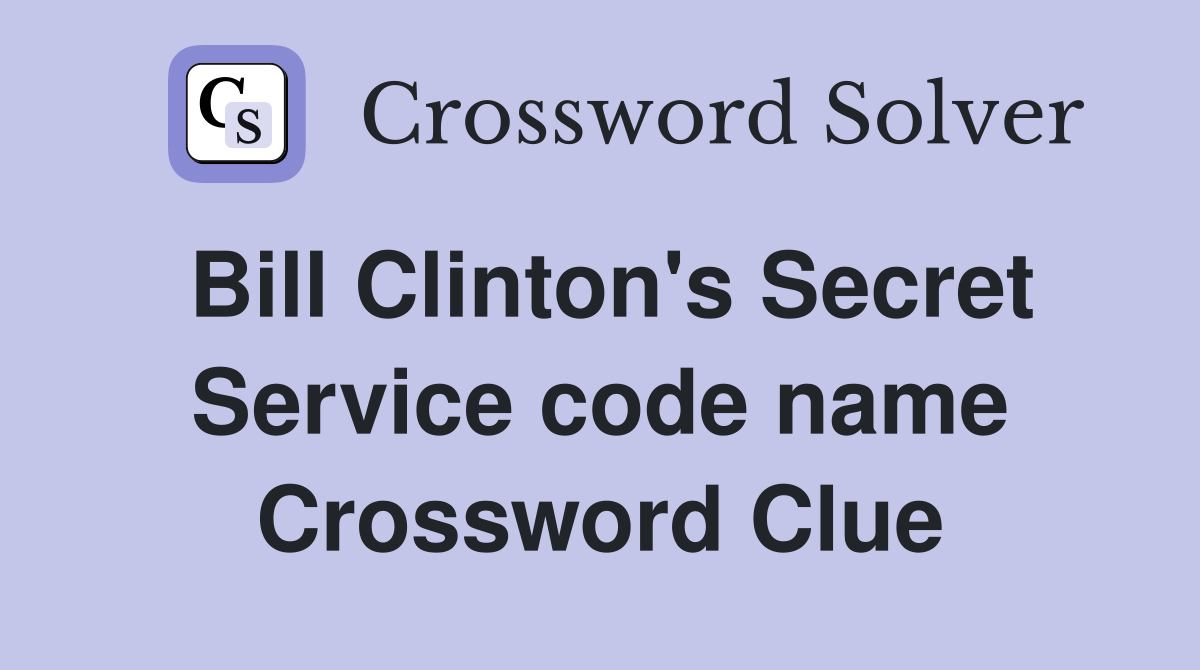 Bill Clinton #39 s Secret Service code name Crossword Clue Answers