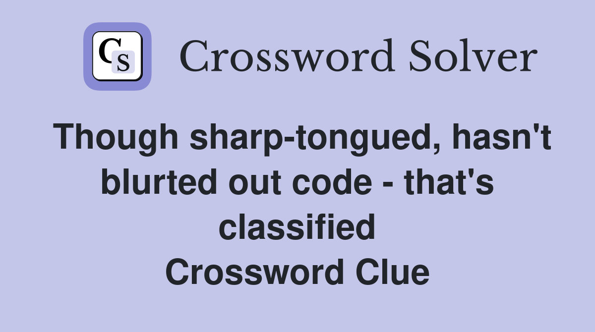 Though sharp tongued hasn #39 t blurted out code that #39 s classified