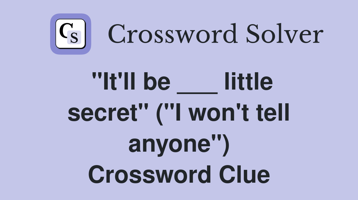 quot It #39 ll be little secret quot ( quot I won #39 t tell anyone quot ) Crossword Clue