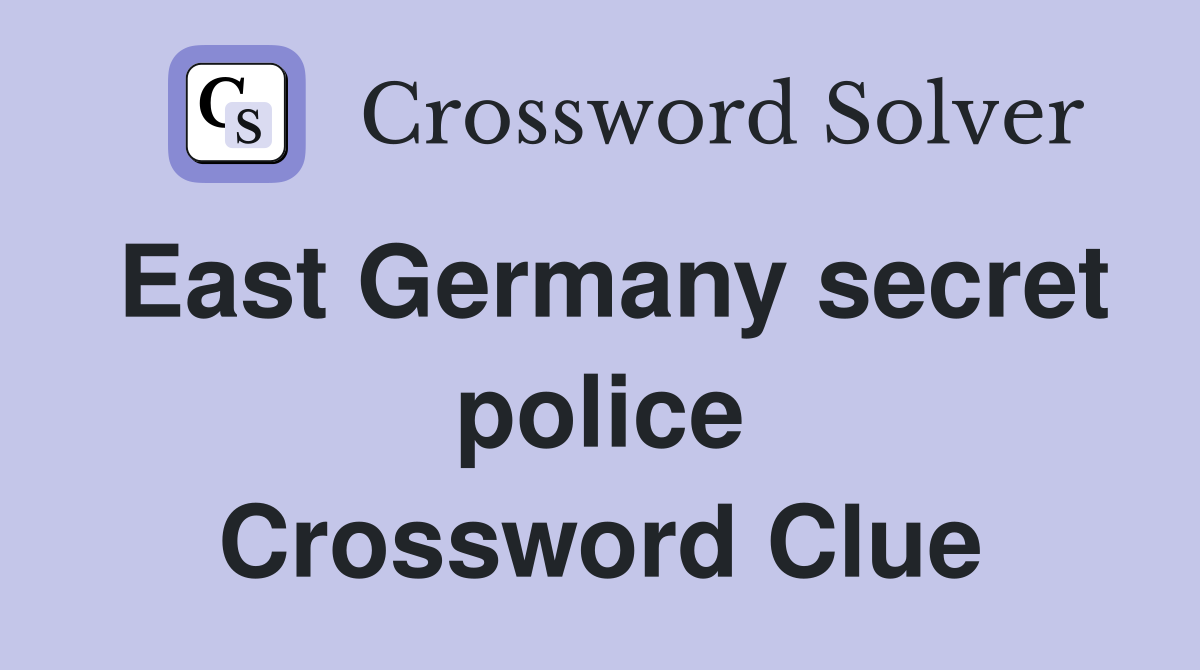 East Germany secret police Crossword Clue Answers Crossword Solver