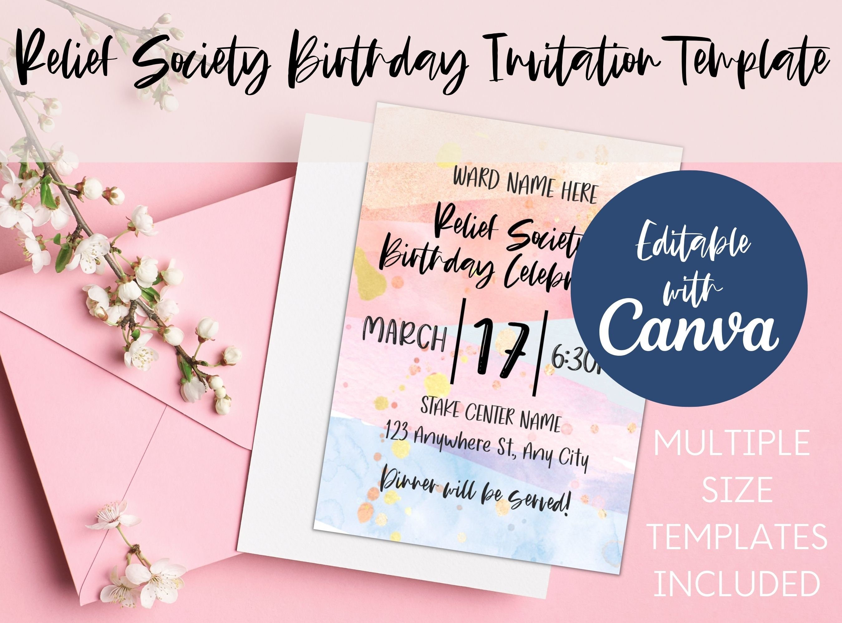 LDS Relief Society RS Birthday Relief Society Invitation Template