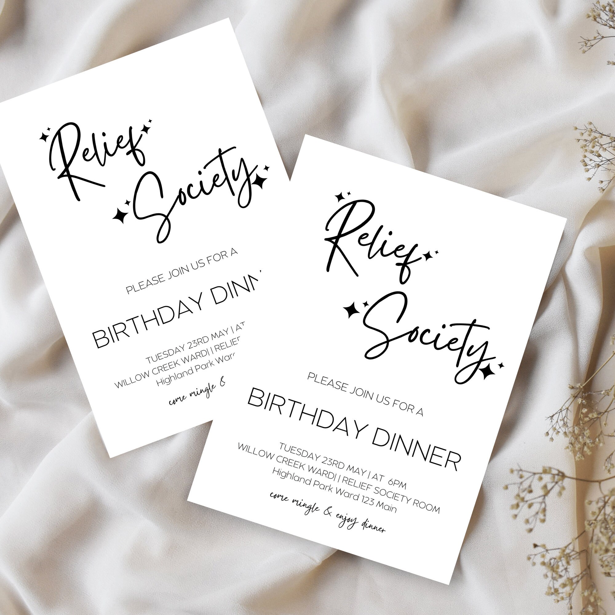 Relief Society Birthday Dinner Invitation Template Minimalistic