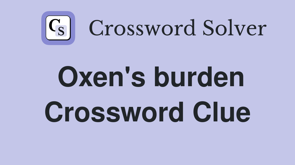 Oxen #39 s burden Crossword Clue Answers Crossword Solver
