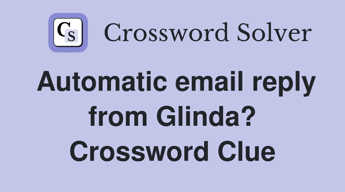 Automatic email reply from Glinda? Crossword Clue Answers Crossword