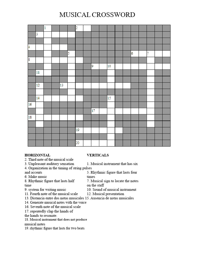 Music Crosswords Printable FREE Printable HQ