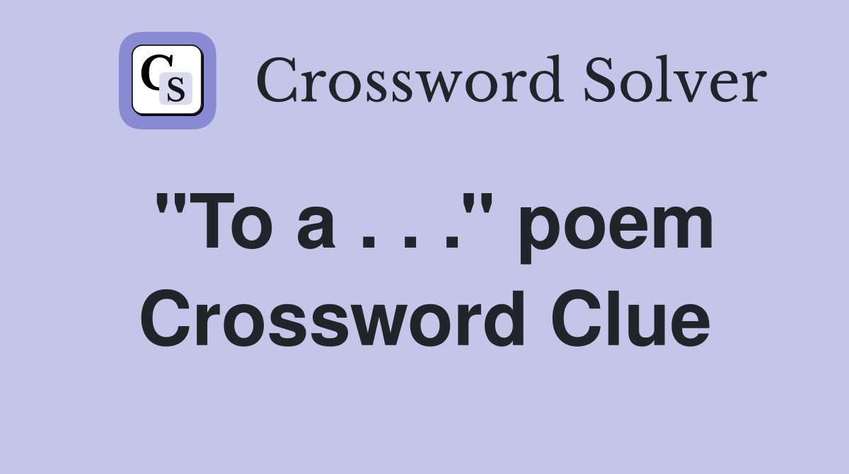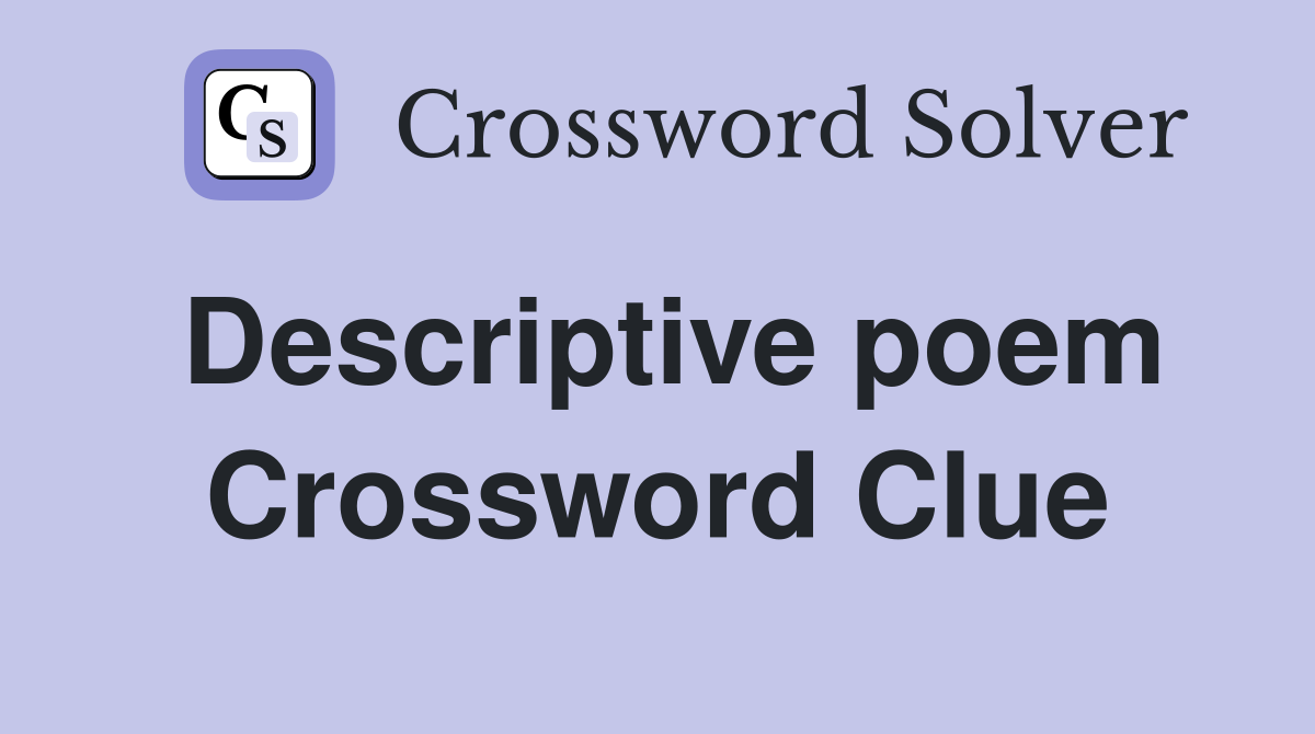 Descriptive poem Crossword Clue Answers Crossword Solver