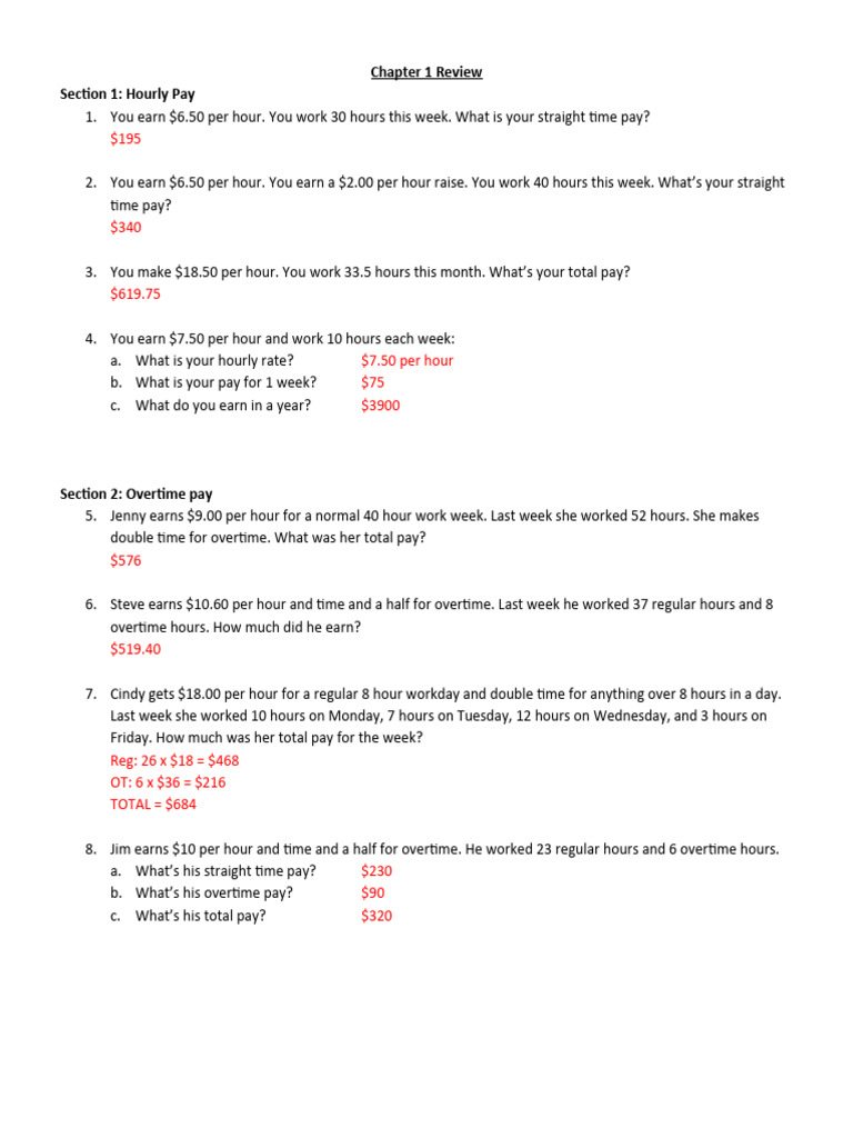 Chapter 1 Review ANSWERS PDF Overtime Salary