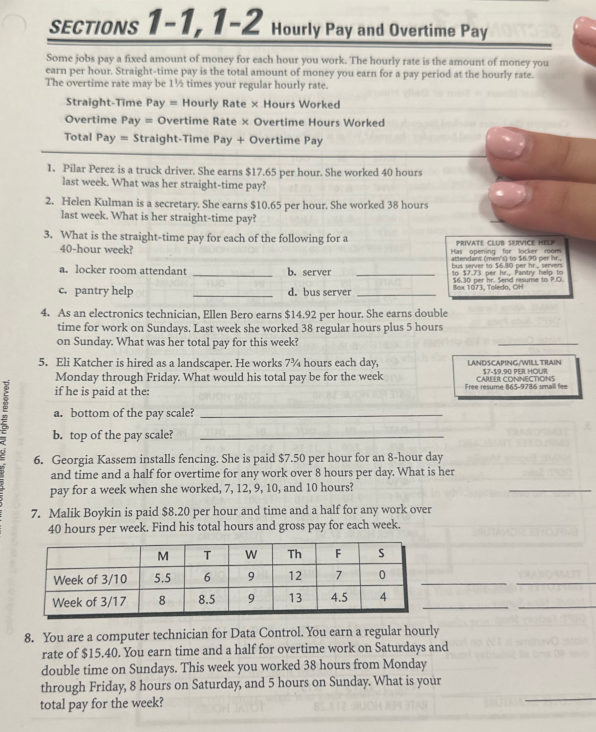 Here are some of the images for Sections 1 1 1 2 Hourly Pay And Overtime Pay Worksheet Answers that we found in our website database.