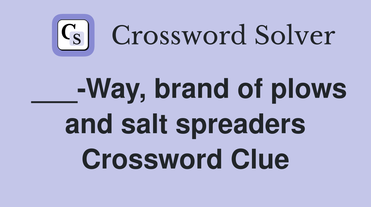 Way brand of plows and salt spreaders Crossword Clue Answers
