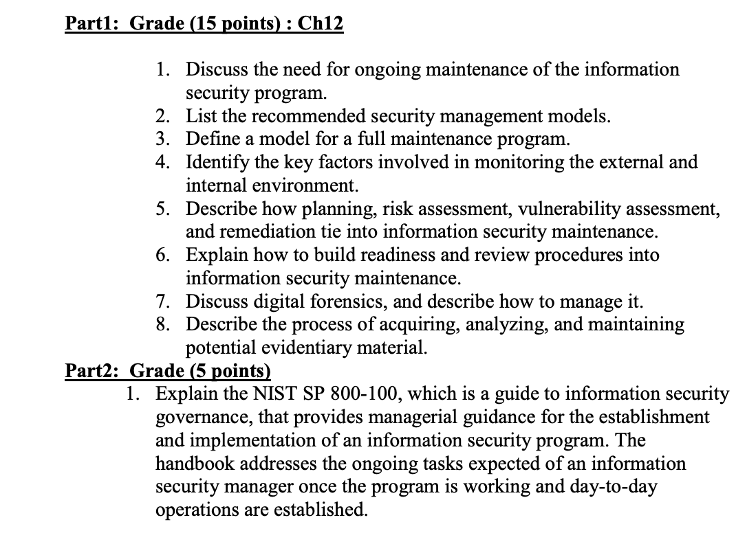 Solved Part1: Grade (15 points) : Ch12 1 Discuss the need Chegg com