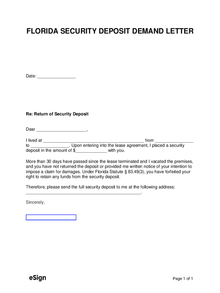 Fillable Online Florida Security Deposit Demand Letter Fax Email Print