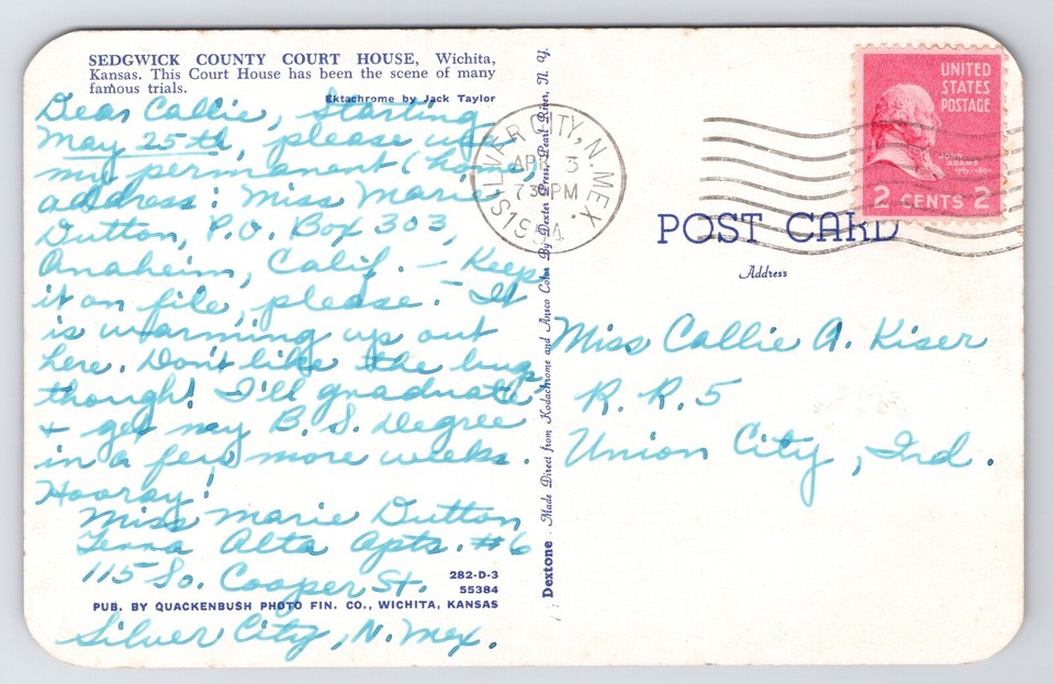 Sedgwick County Court House Wichita KS Postcard