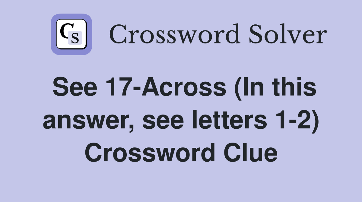 See 17 Across (In this answer see letters 1 2) Crossword Clue