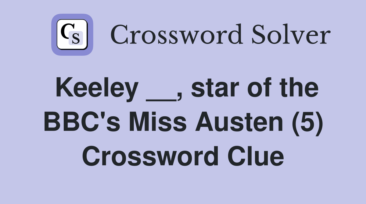 Keeley star of the BBC #39 s Miss Austen (5) Crossword Clue Answers