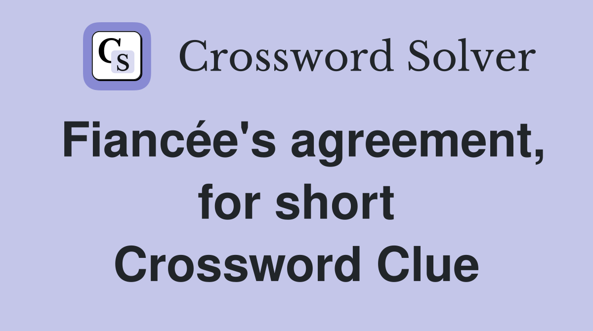 Fiancée #39 s agreement for short Crossword Clue Answers Crossword Solver