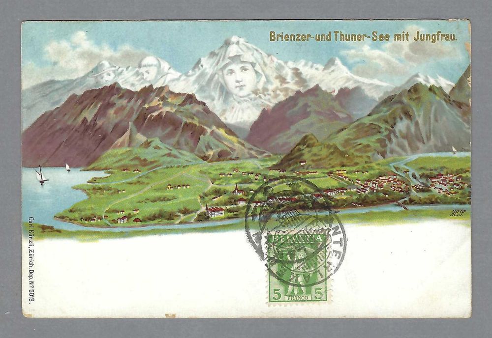1908 BERGGESICHTER BRIENZER UND THUNER SEE MIT JUNGFRAU (Gebraucht