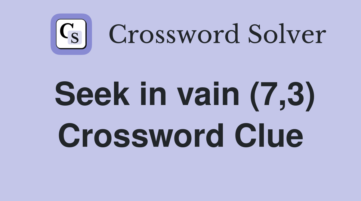 Seek in vain (7 3) Crossword Clue Answers Crossword Solver