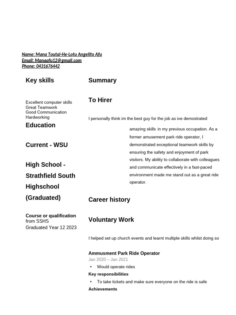 SEEK resume template 1 Full Name emailaddress domain 0000 000 000