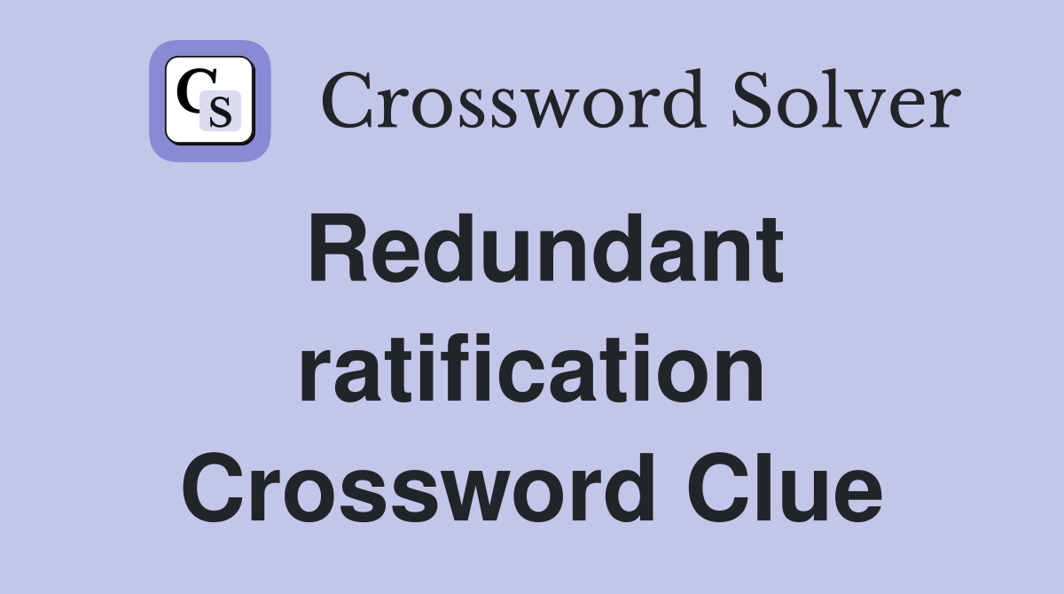 Redundant ratification Crossword Clue Answers Crossword Solver