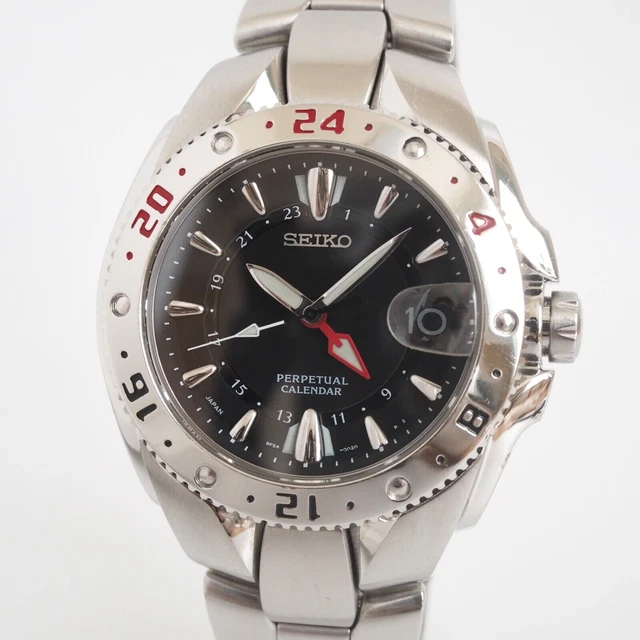 SEIKO PERPETUAL CALENDAR 8F56 002A Quartz GMT Black Dial Used £167 60