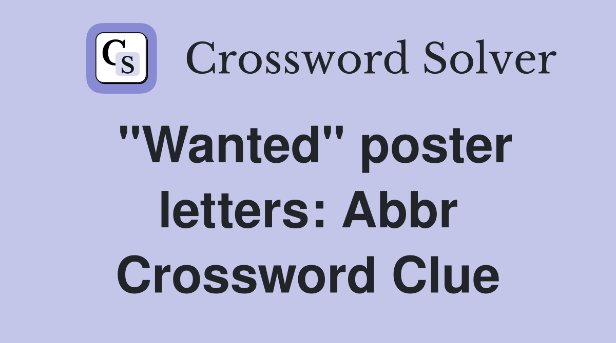 quot Wanted quot poster letters: Abbr Crossword Clue Answers Crossword Solver