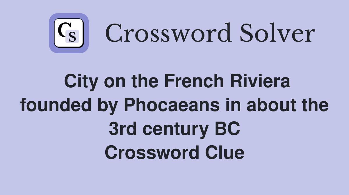 City on the French Riviera founded by Phocaeans in about the 3rd