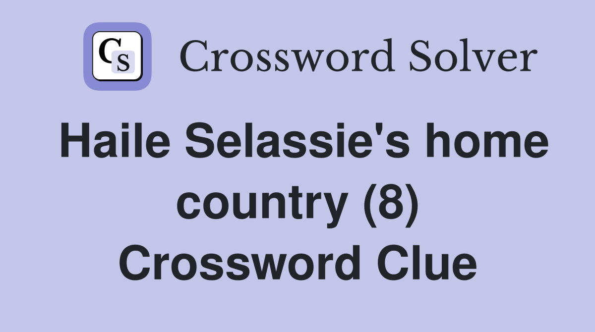 Haile Selassie s home country (8) Crossword Clue Answers Crossword