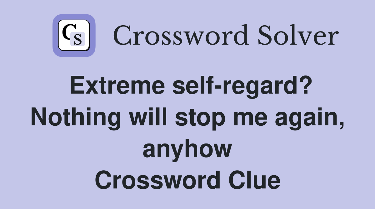 Extreme self regard? Nothing will stop me again anyhow Crossword