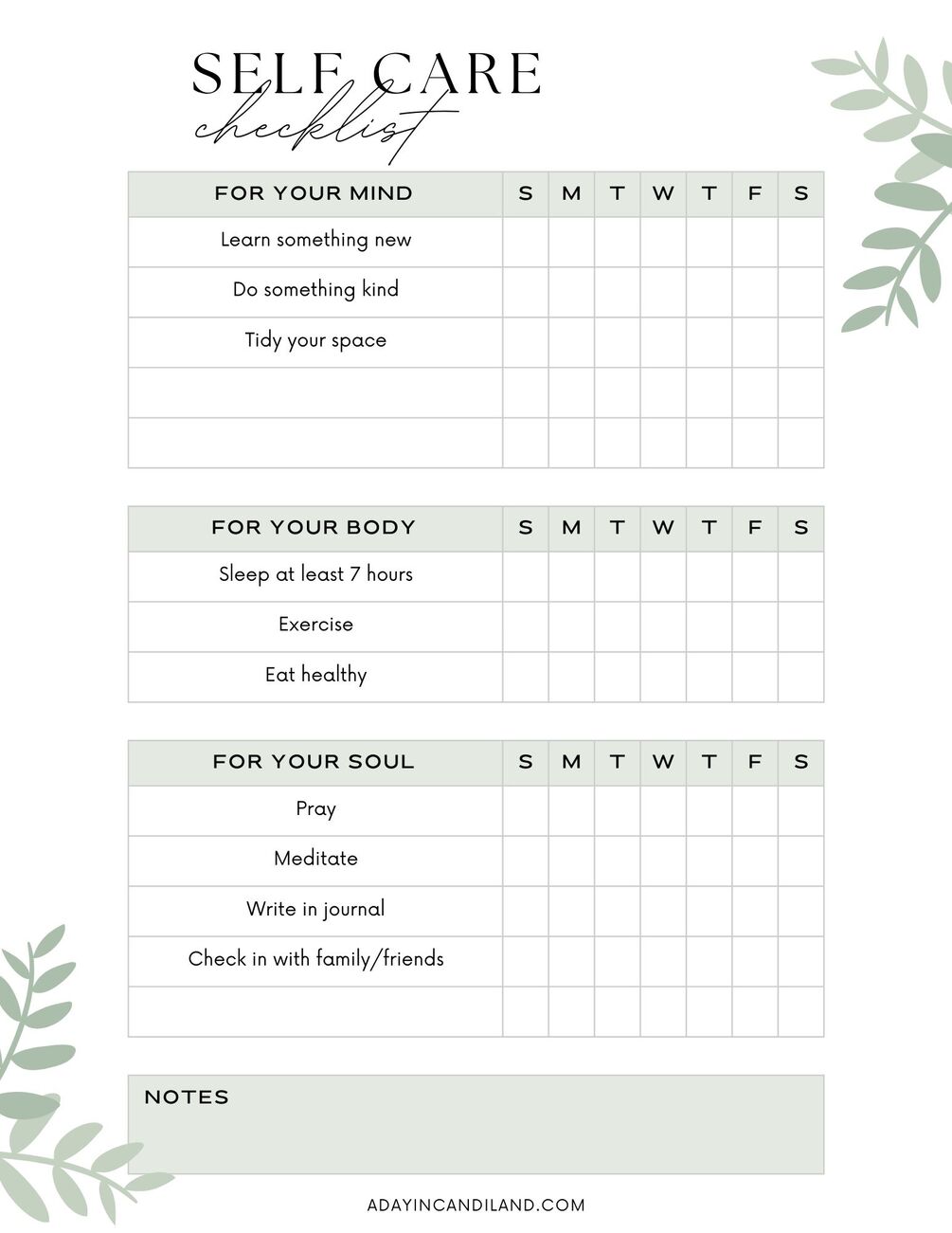 Here are some of the images for Self Care Checklist Printable that we found in our website database.
