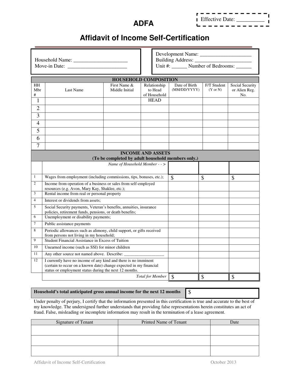 Fillable Online Fillable Online self certification program affidavit