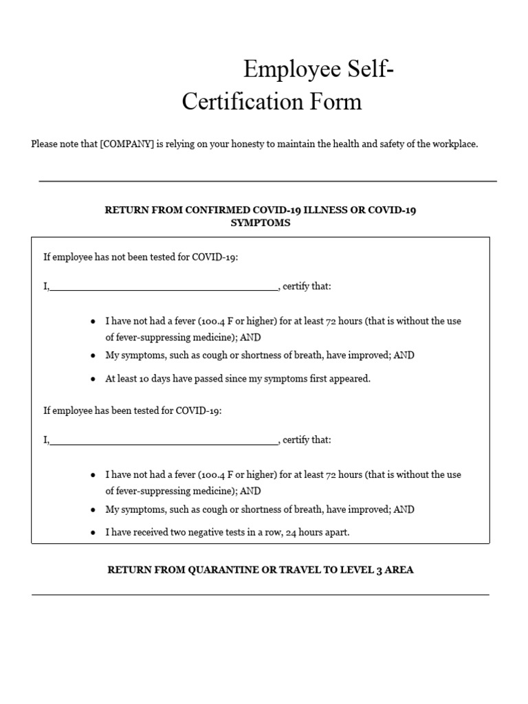 Covid 19 Employee Self Certification Form PDF Medicine Diseases