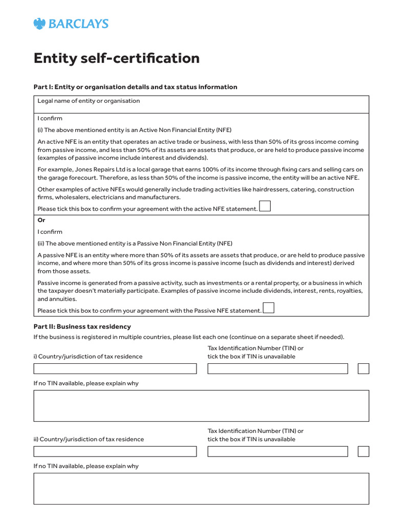 Business Banking Entity Self Certification Form PDF Trust Law Income