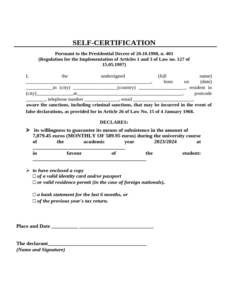 Self Certification Template