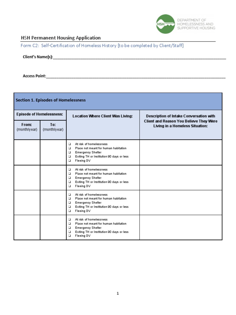 Form C2 Self Certification of Homeless History 6 24 2021 PDF