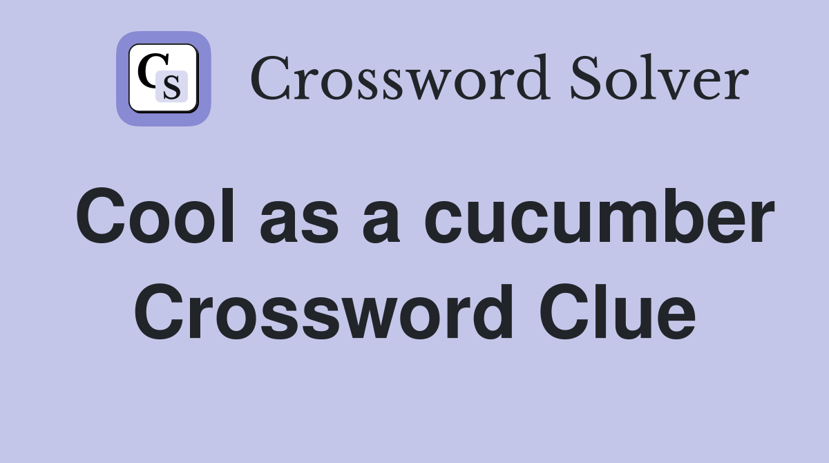 Cool as a cucumber Crossword Clue Answers Crossword Solver