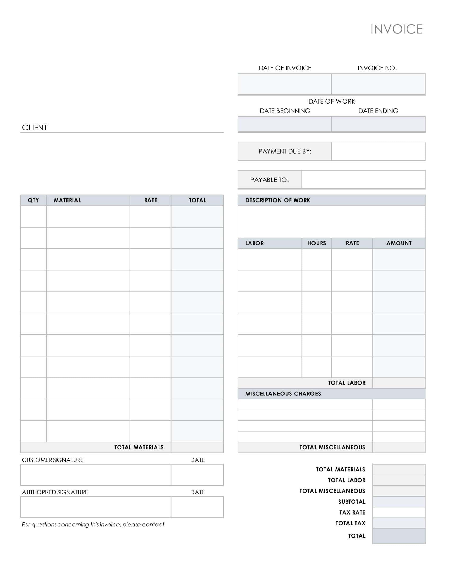Self Employed Invoice Template For Hours Worked Printable Word Searches