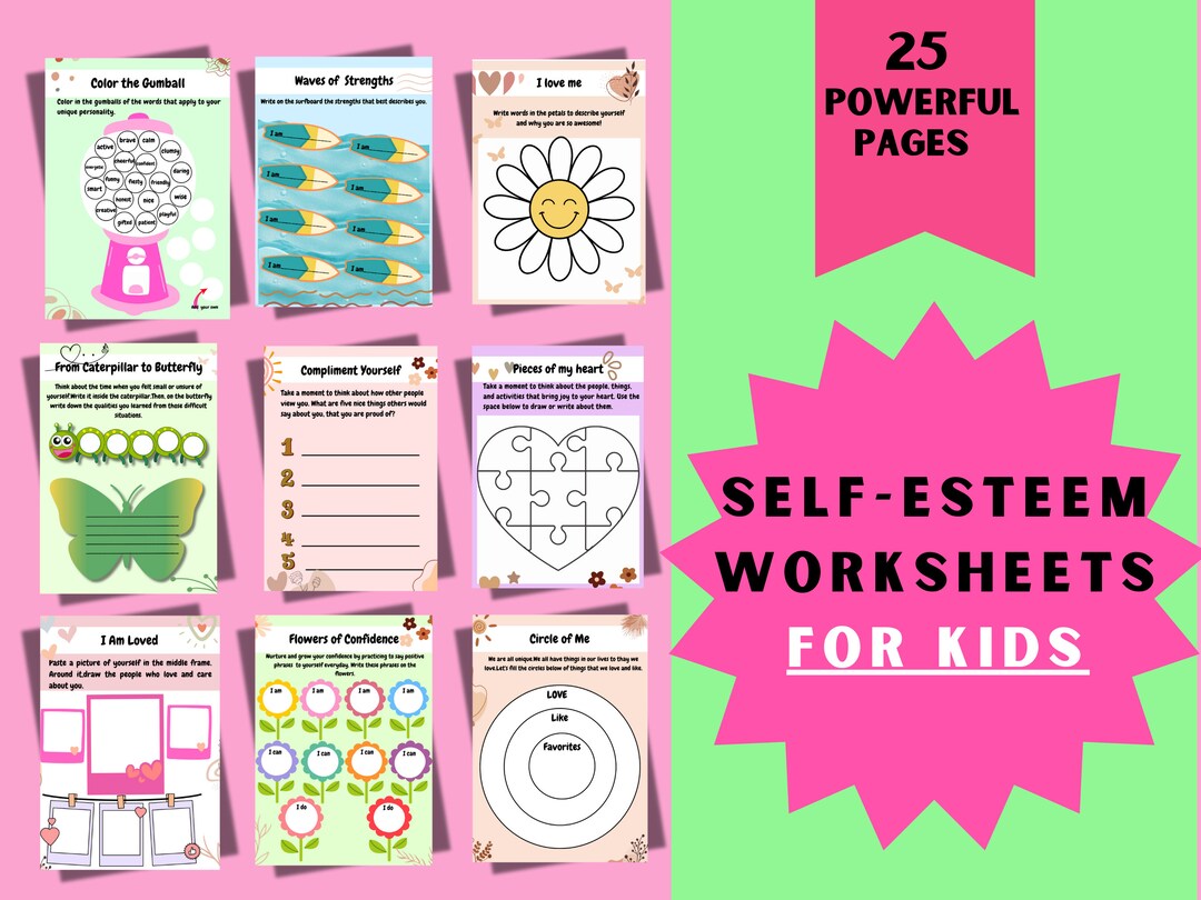 Self esteem Worksheets 20 Item Printable Bundle for Kids Teens mental