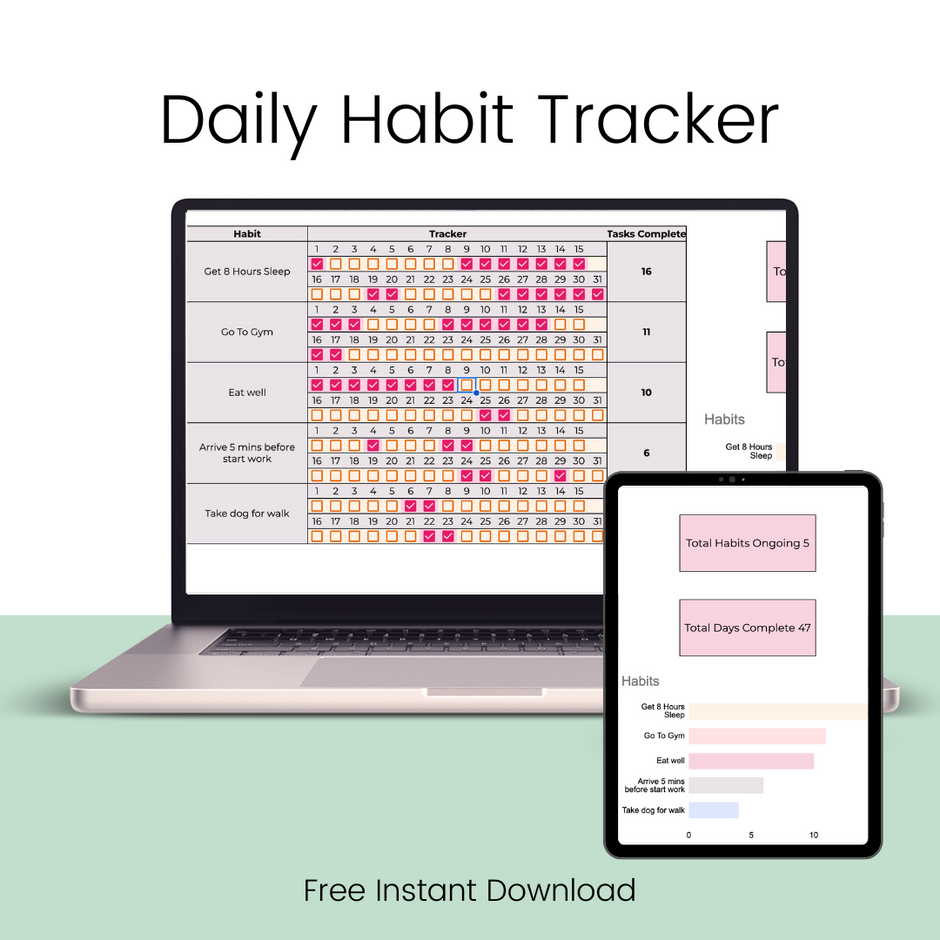 Daily Habit Printable Tracker Template Self care Motivational Diary