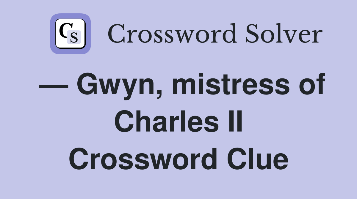 Gwyn mistress of Charles II Crossword Clue Answers Crossword Solver