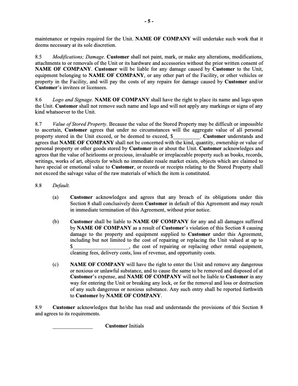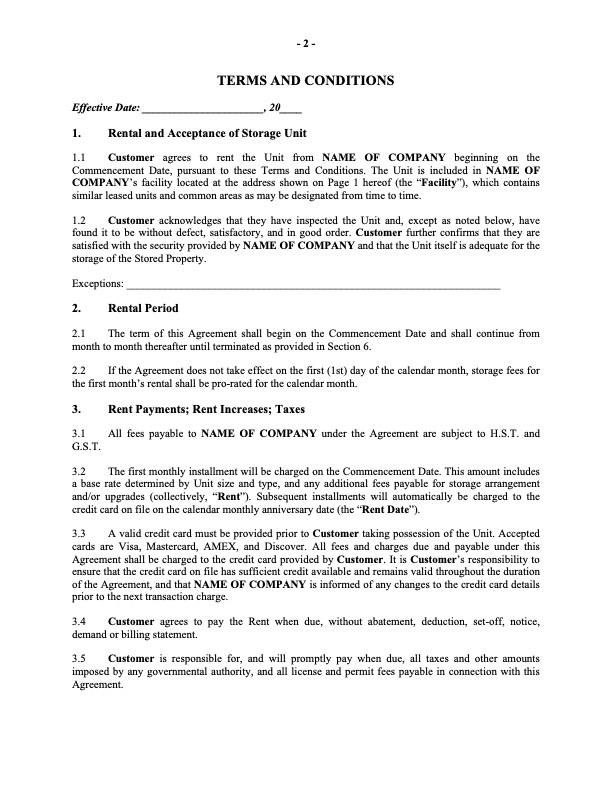 Self Storage Contract Template